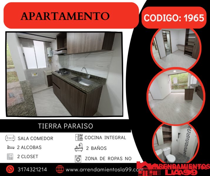 Excelente apartamento ubicado en unidad abierta llamado urbanización tierra paraíso la cual dispone de zonas verdes cámaras de vigilancia parqueaderos comunes parques infantiles y zona BBQ