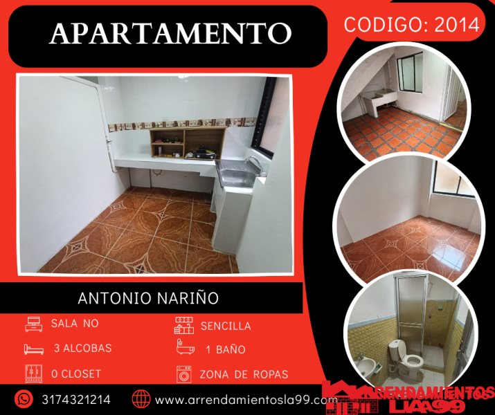 Presentamos este acogedor apartamento en el encantador barrio de Antonio Nariño, sector San Javier. Con 35 m2 de puro confort, este espacio es la combinación ideal entre estilo y funcionalidad.